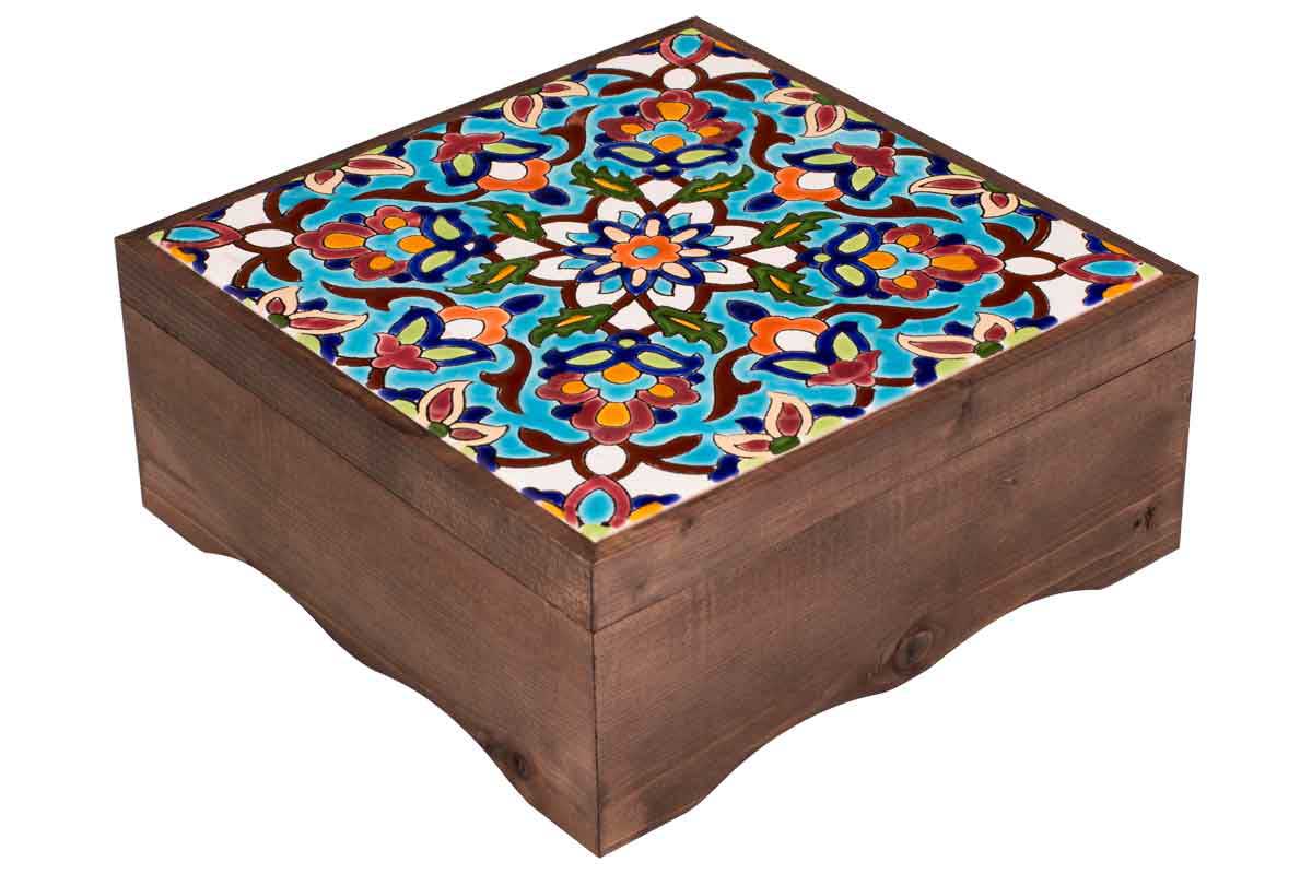 جعبه چوب طبیعی با کاشی اصیل و گز مخصوص